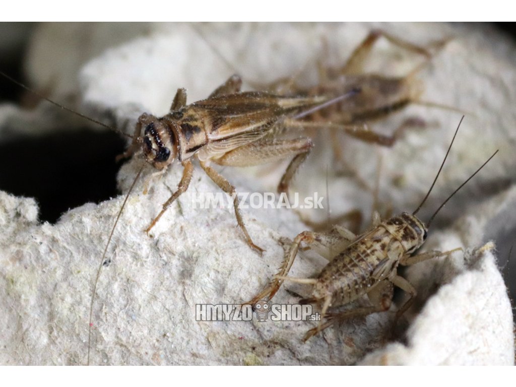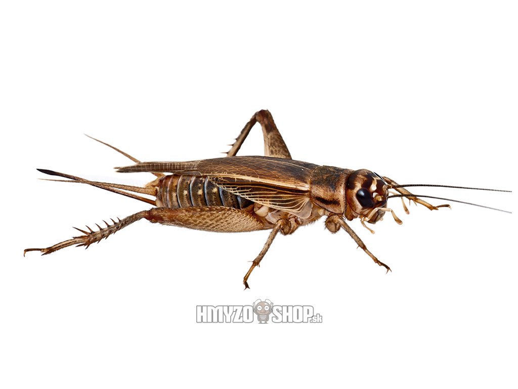 Acheta domesticus je svetlejší druh cvrčka (béžový až hnedý) s typickým rýchlym skákaním. Skáče naozaj výrazne oproti ostatným druhom, takže pri manipulácii je dobré byť o niečo pozornejší.