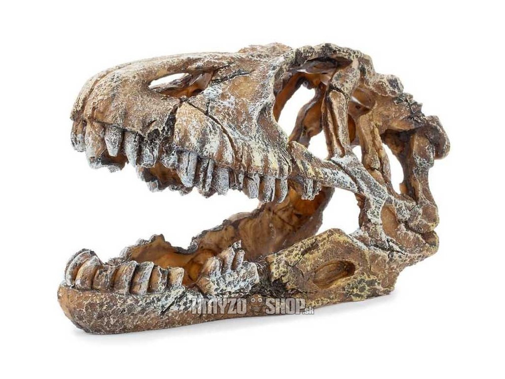 Pridajte do svojho terária alebo akvária dobrodružnú a tajomnú atmosféru s dekoráciou lebky majestátneho dinosaura T-REXA. Táto pekne spracovaná dekorácia z umelej živice oživí prostredie a zároveň poskytuje praktický úkryt pre menšie ryby, kôrovce, plazy, pavúky a iné terárijné a akvárijné zvieratá.