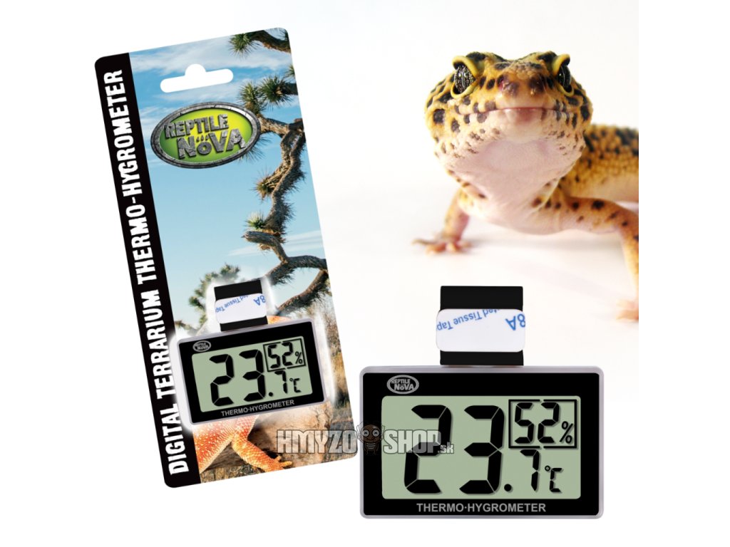 Digitálny prístroj poskytuje rýchle a presné odčítanie hodnôt teploty aj vlhkosti s jednoduchým umiestnením priamo do terária. Kompaktný dizajn a moderný displej z neho robia praktický a elegantný doplnok do každého terária.