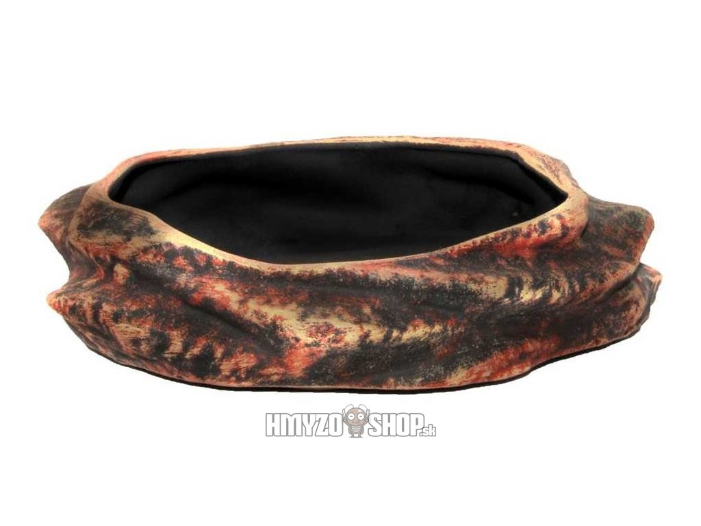 Miska má vyvýšený okraj, ktorý pomáha obmedziť rozsýpanie krmiva a zároveň sťažuje únik živého krmiva ako sú červy.