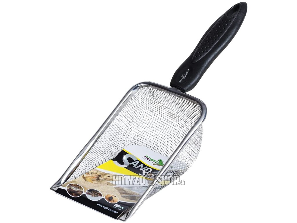 Praktická lopatka s nerezovým sitkom Repti Zoo Sand Scoop je určená na jednoduché a rýchle čistenie pieskových a jemných substrátov v teráriu.