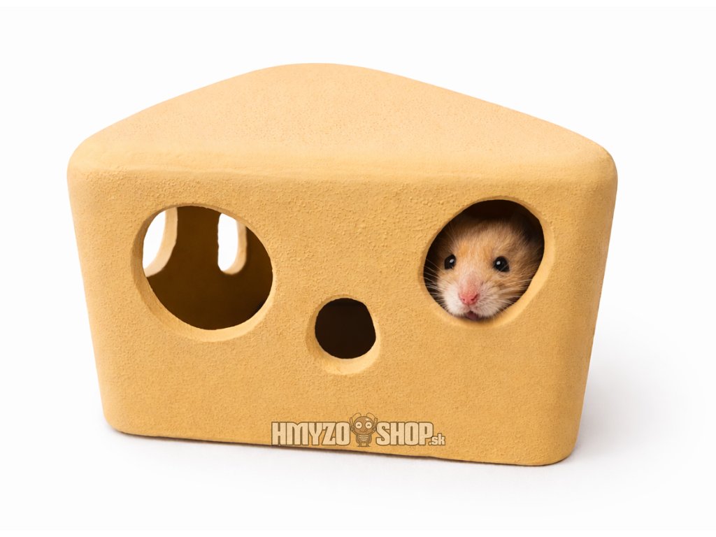 Praktický keramický úkryt v tvare syra pre malé hlodavce, ako sú myši a škrečky. Poskytuje bezpečné miesto na oddych, úkryt aj hru.