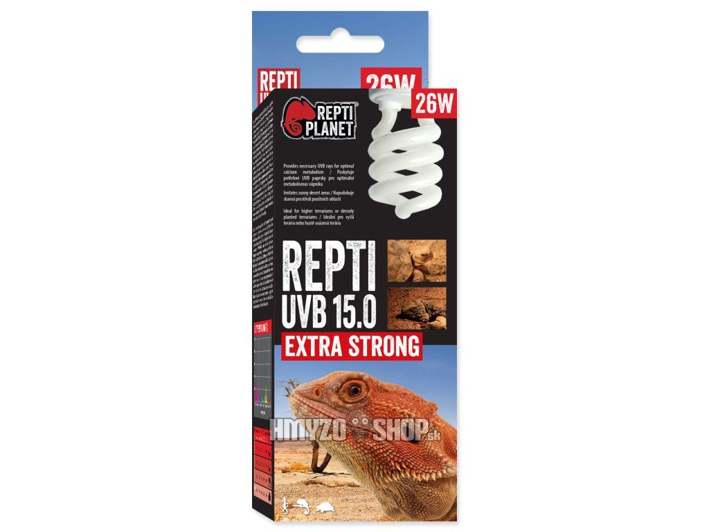 UVB 15.0 – silná intenzita vhodná pre púštne druhy a teráriá s väčšou výškou. Ideálna pre agamy bradaté.