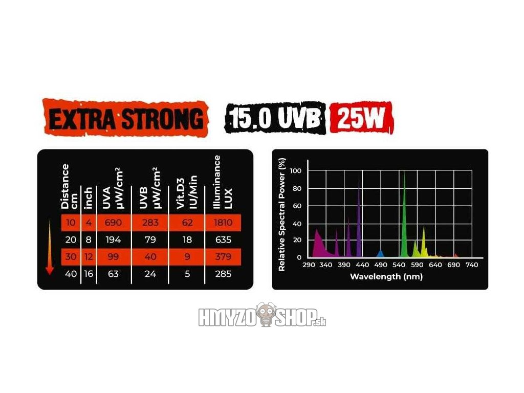 UVB 15.0 – silná intenzita vhodná pre extrémne púštne druhy a teráriá s väčšou výškou. Ideálna pre agamy bradaté.